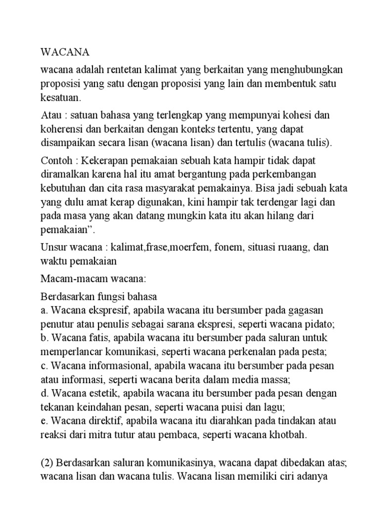 Teks yang bersifat sejajar dan memiliki hubungan dengan teks lain disebut : Oleh pengajarku diposting pada juni 20, 2021. Pengertian dan jenis wacana beserta menurut para ahli.teks eksplanasi merupakan teks yang di dalamnya berisikan mengenai proses mengapa dan bagaimana peristiwa alam, sosial, budaya, ilmu pengetahuan, dan sebagainya bisa terjadi. Wacana tulis merupakan sebuah teks yang berupa rangkaian kalimat yang menggunakan ragam tulis. Contoh yang pertama merupakan contoh wacana yang benar/baik, disebabkan kalimatnya itu tersusun dengan rapi, informasinya juga pun jelas, dari kalimat satu ke kalimat lain itu pun saling.